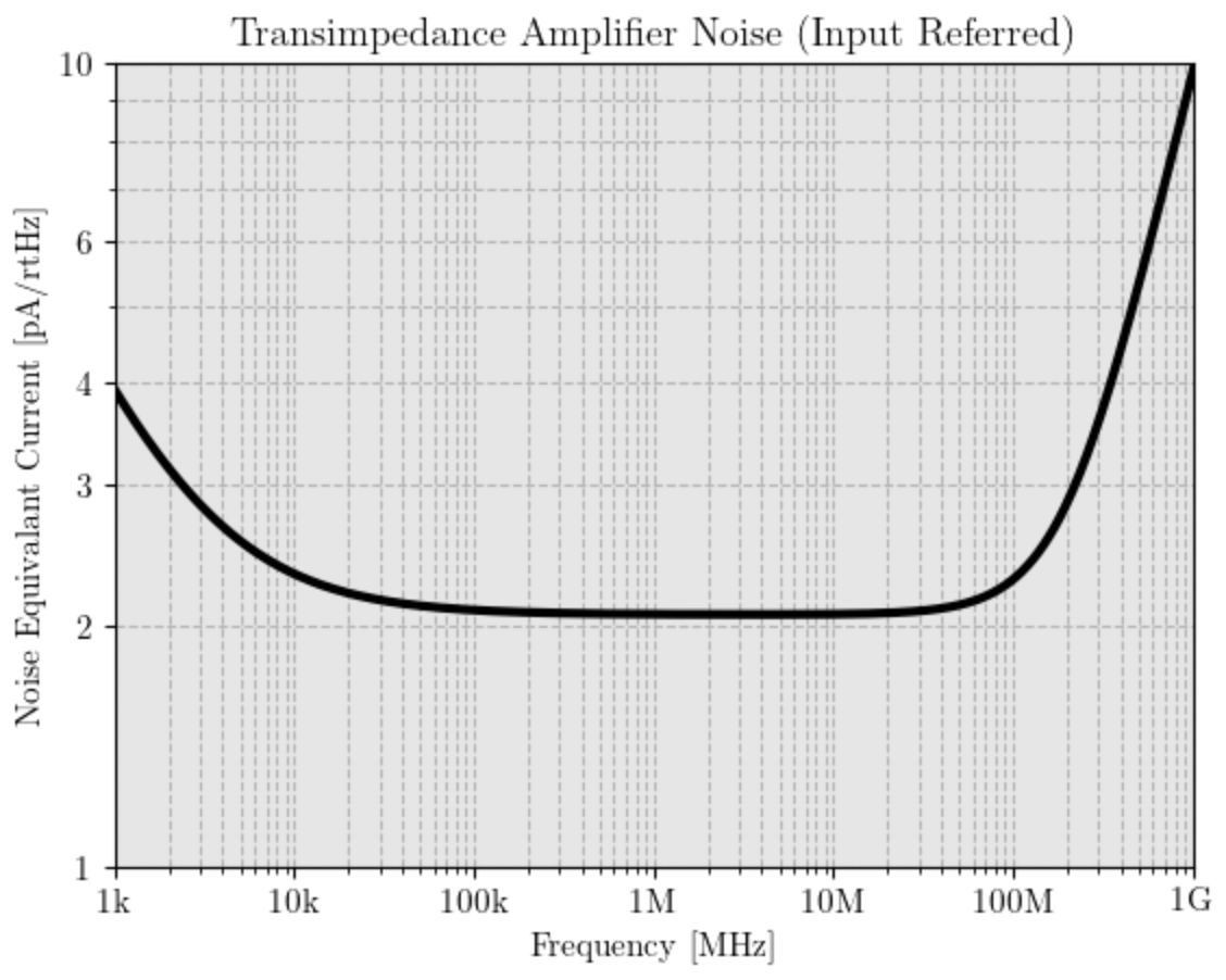 Noise flatband | 1k - 300M | Hz | Typical, depends on photodiode selection |