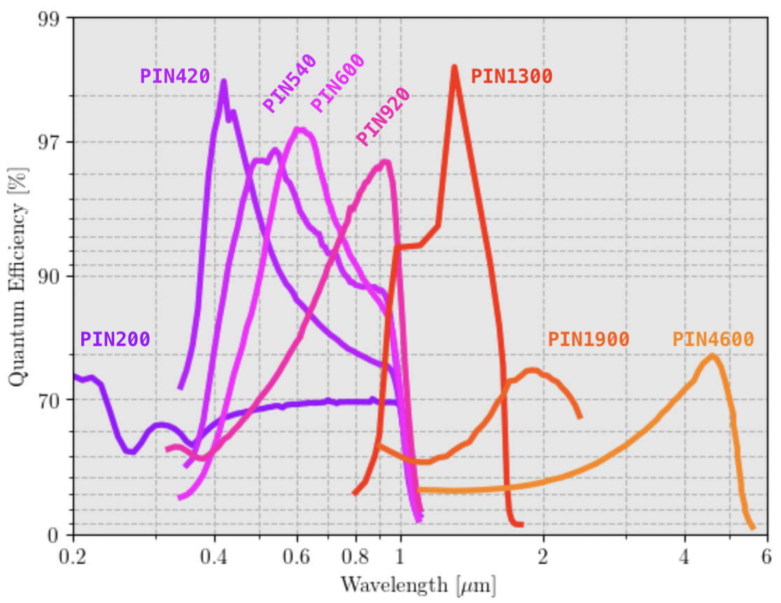 Our standard photodetectors are ideal for implementing quantum measurements such as characterizing squeezed light. They offer the lowest noise equivalant power and highest quantum efficiency of any commercially available detectors, at a highly competitive price. When ordering, first select one of the following photodiodes.